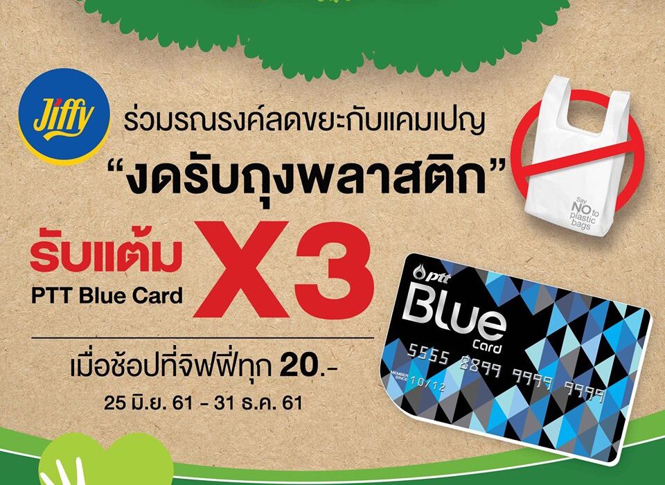 จิฟฟี่ ร่วมรณรงค์ลดขยะด้วยแคมเปญงดรับถุงพลาสติก รับคะแนน PTT Blue Card คูณ 3 เท่า