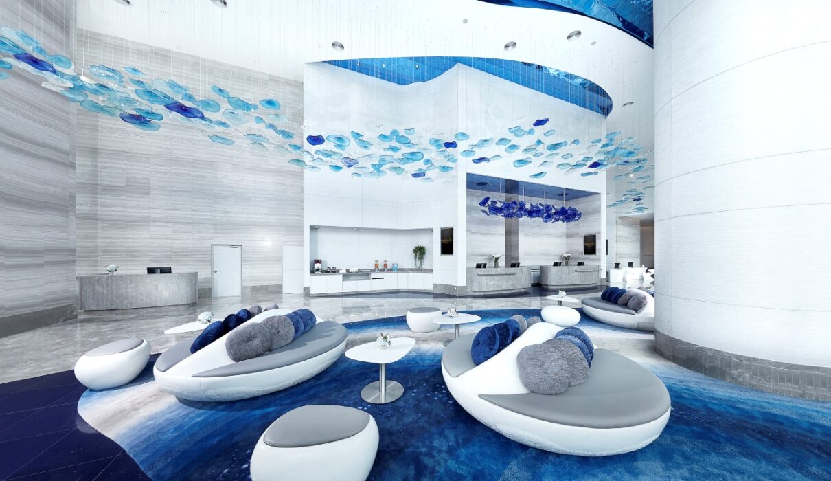 ชั้นล็อบบี้ให้ความรู้สึกเหมือนการเดินลัดเลาะไปตามชายหาดรัฐนิวเซาท์เวลส์ ประเทศออสเตรเลีย แต่ยังคงสอดผสานกลิ่นอายของท้องทะเลไว้ด้วยของตกแต่งด้วยการจำลองรูปลักษณ์เหมือนแพลงตอนชนิดหนึ่ง ที่เรืองแสงตอนกลางคืนโดยใช้การเป่าแก้วและเป่าลายเลียนแบบ แล้ววางดีไซน์ ไว้บนเพดาน ในล็อบบี้ ยิ่งในตอนกลางคืนจะสะท้อนแสงลงไปที่พรม ทำให้เกิดบรรยากาศที่เราตั้งใจจำลองให้ใกล้เคียงของจริงให้ได้มากที่สุด