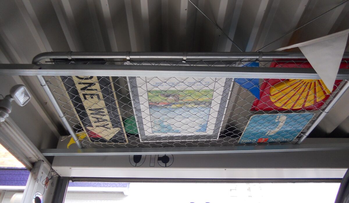นำท่อใส่รถแล้วกลับมาที่โรงจอดรถ เปลี่ยนใบมีดของเลื่อยไฟฟ้า ซึ่งใช้แบบที่สามารถตัดอะลูมิเนียมได้ ตัด 2 ท่อนเพื่อใช้กับความกว้างของโรงจอดรถประมาณ 2,800 มม. วางพาดคานของโรงจอดรถให้เป็นฐาน แล้วจะทำชั้นวางตรงนี้ก็จะได้พื้นที่สำหรับใช้สอยได้ มาถึงตรงนี้ชิ้นที่มีบทบาทสำคัญคือ รั้วจากอเมริกา เป็นรั้วที่ผู้ผลิตโรงจอดรถนำเข้ามาจากอเมริกา นำรั้วไปวางบนคานก็จะกลาย เป็นชั้นวางของได้ เป็นงานง่ายๆ ที่สามารถนำของไปวางเก็บไว้ได้ แต่มีเรื่องที่ไม่ได้คาดคิดมาก่อน… ช่องว่างระหว่างชั้นวางของกับเพดานมีแค่ 170 มม. อย่างไรก็เก็บยางรถยนต์ไม่ได้ ยิ่งไปกว่านั้น ใช้เก็บของที่บางๆ และเบาๆ จะดีที่สุด ดังนั้น ของที่นำมาเก็บที่นี่จึงต้องจำกัดประเภท