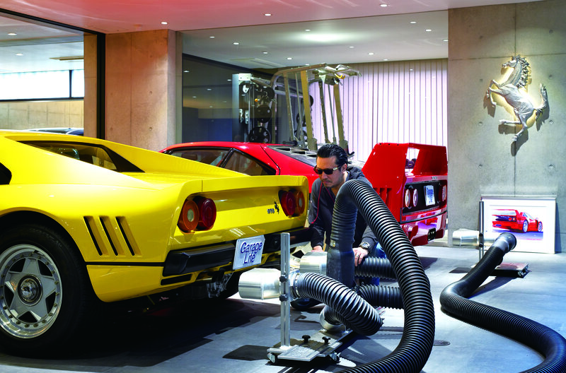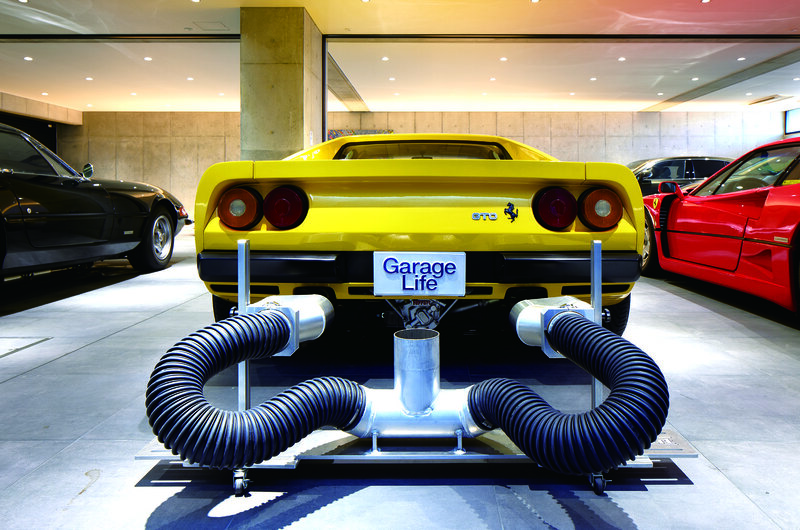 “ผมคิดมาตลอดว่า รถประเภทนี้จำเป็นต้องมีระบบระบายไอเสียเฉพาะในโรงจอดรถ จึงปรึกษาคุณนิชากาวะ เขาแนะนำให้ผมรู้จักกับคุณฮาเซกาวะ จาก “SAFETY LIFE” และนำ EG Way Out มาใช้ ผมขอให้ฝังตัวเครื่องของระบบระบายไอเสียไว้ใต้พื้น เพราะไม่อยากให้มองเห็น”