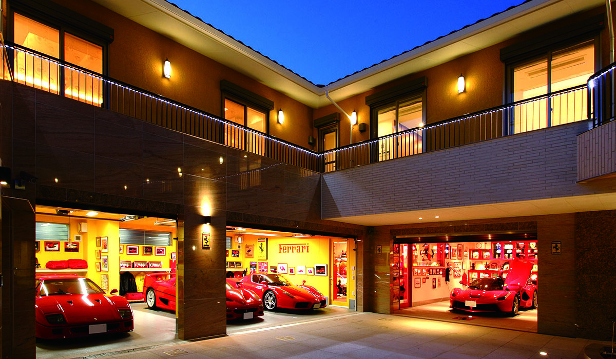 พื้นที่ด้านในสุดคือส่วนที่ทำไว้สำหรับเฟอร์รารี่สีแดงสด เป็นโรงจอดรถที่เป็นเหมือนอนุสรณ์สถานของ Ferrari คือมีรถรุ่นตั้งแต่ F40 รุ่นล่าสุด แนวคิดในการตกแต่งจึงต่างออกไป โรงจอดรถคุณ M ส่วนใหญ่จะมีการผสมผสานระหว่างภาพลักษณ์และประโยชน์ใช้สอย แต่เฉพาะพื้นที่ตรงนี้ ทั้งพื้นและผนังจะแตกต่างออกไป เขาแต่งให้เป็นที่โชว์ของที่เกี่ยวข้องและเป็นแกลเลอรี่ด้วย