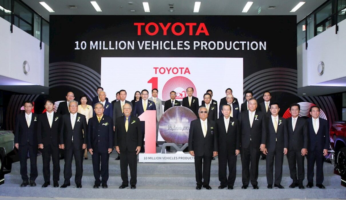 บริษัท โตโยต้า มอเตอร์ ประเทศไทย จำกัด เริ่มดำเนินธุรกิจในประเทศไทยเมื่อปี พ.ศ. 2505 ภายใต้ปรัชญา “ส่งเสริมพัฒนาการอย่างยั่งยืนของสังคมและประเทศที่โตโยต้าเข้าไปดำเนินธุรกิจ” ส่งผลให้ธุรกิจรถยนต์ของโตโยต้าเจริญก้าวหน้าขึ้นโดยลำดับ จวบจนปัจจุบันกว่า 56 ปี ภายใต้การลงทุนเพื่อเสริมสร้างความเข้มแข็งให้กับธุรกิจอย่างต่อเนื่อง จากโรงงานผลิต 3 แห่ง ได้แก่ โรงงานประกอบรถยนต์สำโรง จ.สมุทรปราการ โรงงานประกอบรถยนต์เกตเวย์ อ.แปลงยาว จ.ฉะเชิงเทรา และโรงงานประกอบรถยนต์บ้านโพธิ์ อ.บ้านโพธิ์ จ.ฉะเชิงเทรา ด้วยความร่วมมือร่วมใจ และความทุ่มเทของพนักงานทุกคน เพื่อตอบสนองความต้องการของลูกค้าให้ได้รับผลิตภัณฑ์และบริการที่ดีที่สุด นำมาสู่การบรรลุยอดการผลิตครบ 10 ล้านคัน และเป็นอีกหนึ่งในหน้าประวัติศาสตร์แห่งความสำเร็จของโตโยต้า
