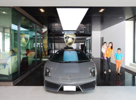 โรงจอดรถที่มีห้องนั่งเล่นไว้ชื่นชม เส้นสายอันงดงามของ Lamborghini