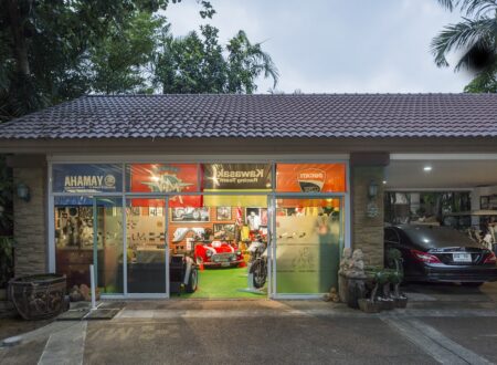 โรงจอดรถที่เต็มเปี่ยมด้วย ความฝันของคนรักรถ บ้านคุณเฮง (รัฐชัย) กรุงเทพฯ แรงบันดาลใจในการทำโรงจอดรถของผมคงมาจากตอนไปเรียนอยู่ที่อเมริกา ซึ่งโรงจอดรถไม่ใช่แค่ที่เก็บรถเท่านั้น มันเป็นสถานที่ที่เราสามารถใช้งานอื่นๆ ได้อีกมากมาย นั่นคือ…บทเริ่มต้นของการสนทนาเกี่ยวกับโรงจอดรถแห่งนี้ เรื่อง: วีระโชติ ดวงฤทัย ภาพ: สุภชัย รอดประจง บริเวณพื้นที่ตรงกลางมีทั้งที่เป็นพื้นปูนขัดมันและที่ปูด้วยกระเบื้อง โดยไม่ลืมที่จะทำท่อระบายน้ำไว้โดยรอบ เป็นความใส่ใจในรายละเอียดของเจ้าของ โรงจอดรถที่เรามาสัมภาษณ์ในครั้งนี้ ดูจากภายนอกเราคาดดาไม่ถูกเลยว่า ข้างในนั้นจะเป็นอย่างไร แต่พอเปิดประตูรั้วเข้าไป ก็ประหลาดใจกับสิ่งที่ได้เห็น เพราะพื้นที่บริเวณลานด้านหน้าของตัวบ้านเป็นโรงจอดรถขนาดใหญ่