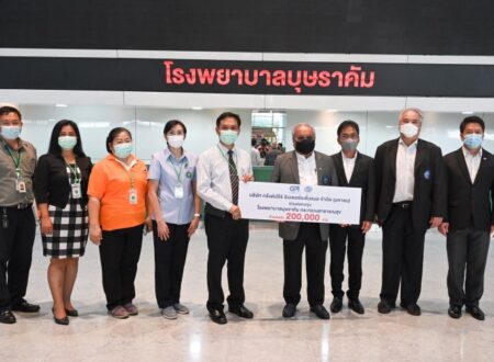 คณะผู้บริหารบริษัทกรังด์ปรีซ์ฯ มอบเงิน 200,000 บาท สมทบทุนรพ.บุษราคัม รักษาผู้ป่วยโควิด-19