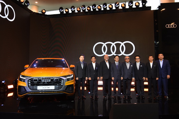 เพื่อเอาใจลูกค้าที่รอคอยการมาของ SUV ระดับโลกรุ่นล่าสุดตระกูล Q Family ที่เพิ่งเปิดตัวในยุโรปไปไม่นาน และในโอกาสฉลองเปิดสำนักงานใหญ่-โชว์รูมและศูนย์บริการแห่งใหม่ Audi Centre Thailand และภายใต้การสนับนุนของ Audi AG ได้จัดบิ๊กเซอร์ไพรส์ให้ตลาด ด้วยการชิงเปิดตัว Audi Q8 เป็นประเทศแรกในเอเชียตะวันออกเฉียงใต้ โดย Audi Q8 นับเป็นสุดยอดยนตรกรรม SUV ที่ฉีกกฎเกณฑ์และนิยามเดิม ๆ ของ SUV สู่ความอีเอกลักษณ์ดีไซน์หรูหรา เฉียบคม และดุดัน สวยงามสะกดตาด้วยเส้นสายที่ให้ความรู้สึกสปอร์ตตามสไตล์อาวดี้ ภายในกว้างขวาง ให้ความสะดวกสบายด้วยระบบเชื่อมต่อที่ได้รับการออกแบบให้มีความพิเศษเหนือระดับและใช้งานง่ายเรียกว่ามาพร้อมเทคโนโลยีทันสมัครครบครัน และมีสมรรถนะ เกาะถนนเป็นเยี่ยมด้วยระบบขับเคลื่อน Quattro 1 ล้อ ทรงประสิทธิภาพ