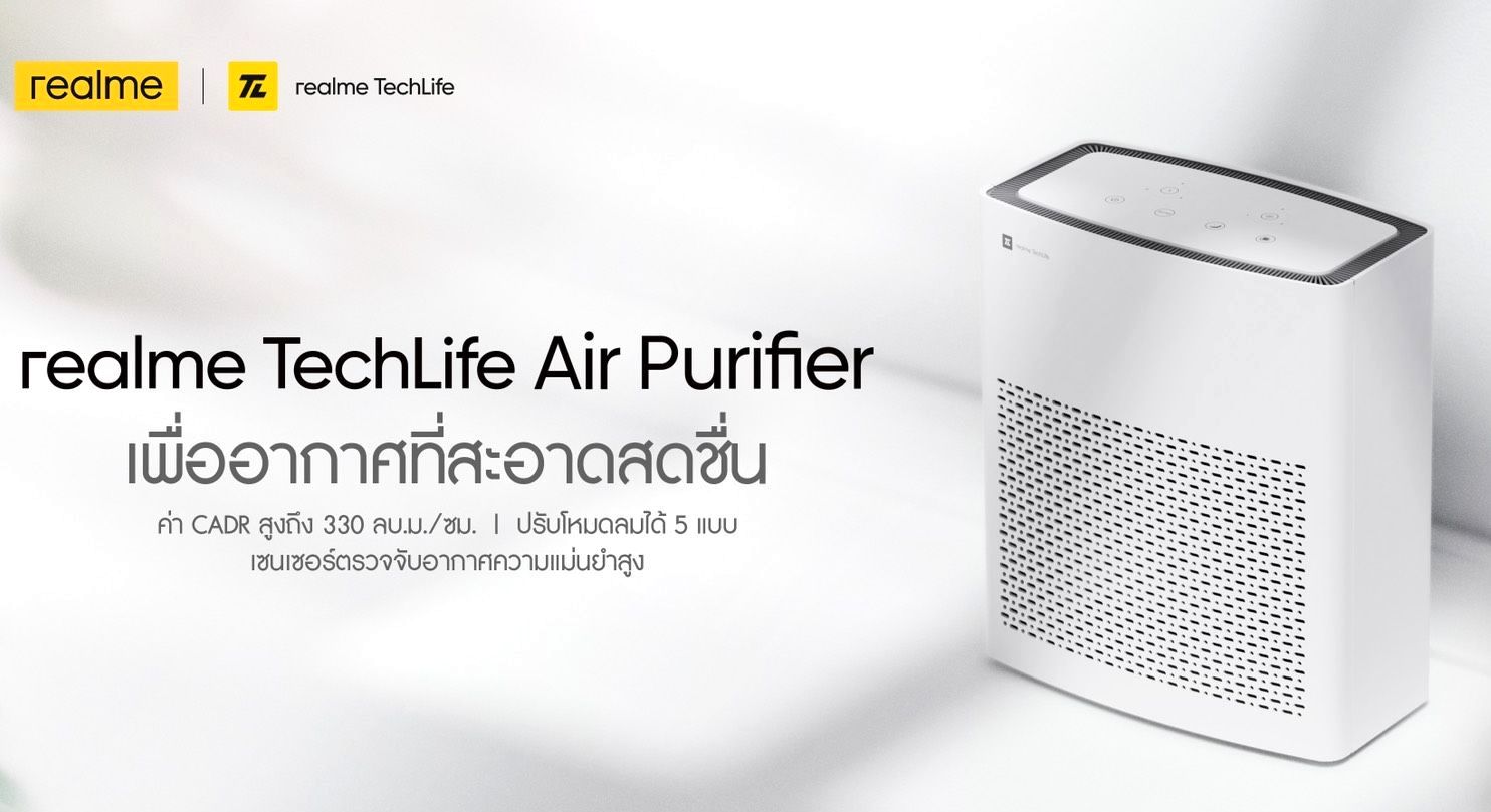 realme แบรนด์สมาร์ทโฟนเพื่อคนรุ่นใหม่ที่เติบโตเร็วที่สุดในโลก หลังจากประสบความสำเร็จกับผลิตภัณฑ์ AIoT ในส่วนของ TWS (True Wireless Stereo) อย่างหูฟังไร้สายอัจฉริยะ ,Wearable อย่างสมาร์ทวอทช์ หรือ Smart Care อย่างแปรงสีฟันไฟฟ้าโซนิค ล่าสุด realme มุ่งมั่นที่จะขยายผลิตภัณฑ์ AIoT เพื่อตอบสนองไลฟ์สไตล์และครอบคลุมทุกการใช้ชีวิตประจำวันของคนรุ่นใหม่ในส่วนของ Smart Home ภายใต้ realme TechLife กับผลิตภัณฑ์ใหม่ล่าสุดอย่าง realme TechLife Air Purifier เครื่องฟอกอากาศ ‘เพื่ออากาศที่ดีและสะอาดสดชื่น’ โดยมาพร้อมกับฟังก์ชั่นใช้งานง่าย ไม่ว่าจะสามารถวัดค่า CADR ได้สูงถึง 330 ลบ.ม. / ชม. พิเศษกว่านั้นคือสามารถปรับโหมดลมได้มากถึง 5 แบบ รวมถึงมีเซนเซอร์ตรวจจับอากาศที่มีความแม่นยำสูง