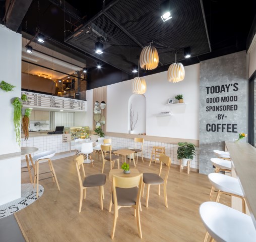 ภายในคาเฟ่แห่งนี้ แตกต่างจากคาเฟ่อื่นๆ ที่คุณเคยไปเยือน เพราะพื้นที่ภายในถูกเปิดโล่งเชื่อมกับพื้นที่ Garage ของร้านแต่งล้อรถยนต์ซึ่งเป็นเจ้าของเดียวกัน ทำให้ด้านหนึ่งแสดงออกถึงความเท่ สไตล์ลอฟท์ ประดับประดาไปด้วยของแต่งล้อ แต่เมื่อหันกลับมาทางพื้นที่ของตัวคาเฟ่เอง คุณกลับสัมผัสได้ถึงความอบอุ่น ด้วยการตกแต่งสไตล์ Minimal พร้อมกับเฟอร์นิเจอร์สีเอิร์ธโทน กำแพงสีขาว เข้ากันดีกับเฟอร์นิเจอร์ไม้ รวมถึงผนังเคาท์เตอร์บาร์ที่ใช้กระเบื้องสี่เหลี่ยมแผ่นเล็กมาใช้เป็นลูกเล่น เพิ่มความสดชื่นด้วยต้นไม้สีเขียวตามมุมต่างๆ