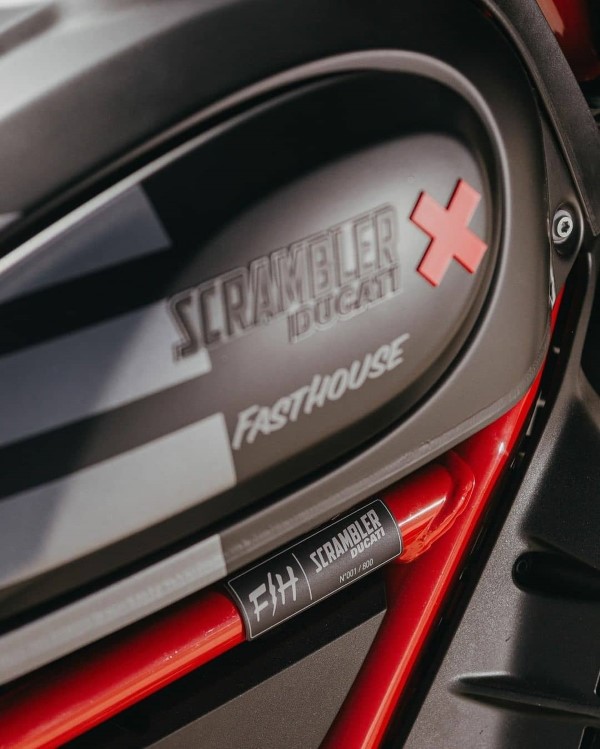 ดอม เหตระกูล กรรมการผู้จัดการบริษัทโมโตเร อิตาเลียโน กล่าวว่า Ducati Scrambler Desert Sled Fasthouse มีดีเอ็นเอของความเป็นออฟโรดทุกมุมมอง โดดเด่นด้วยสีพิเศษคือ สีดำด้านขลิบด้วยสีเงิน โลโก้กากบาท(X) สีแดงของ Scrambler Desert Sled วางคู่กับโลโก้ Fasthouse ที่ข้างถังน้ำมัน เฟรมถักสีแดงสวยเด่นสะกดทุกสายตา ตอกย้ำความพิเศษเหนือใครด้วยสัญลักษณ์ Limited ที่ด้านขวาของตัวรถ
