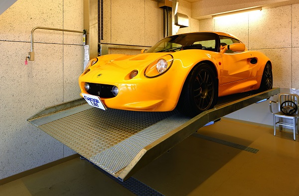 เพื่อให้จอดรถได้ 3 คันตามที่ต้องการ จึงต้องติดตั้งลิฟต์ยกรถ คุณมุราตะไม่เลือกลิฟต์ยกรถแบบทำงาน แต่เลือกลิฟต์ยกรถสำหรับจอด ความแตกต่างของลิฟต์ทั้งสองแบบ คือ ลิฟต์ยกรถแบบทำงาน ส่วนที่เป็นพื้นจะมีแผ่นเหล็ก 2 ข้างสำหรับรองล้อรถเท่านั้น ขนาดไม่กว้างมากประมาณแผ่นบันได เพื่อให้สะดวกต่อการทำงาน สามารถดูช่วงล่างของรถได้ง่าย ๆ ส่วนลิฟต์ยกรถสำหรับจอด พื้นจะเป็นแผ่นเหล็กแผ่นเดียว สำหรับให้รถจอดแล้วยกขึ้น