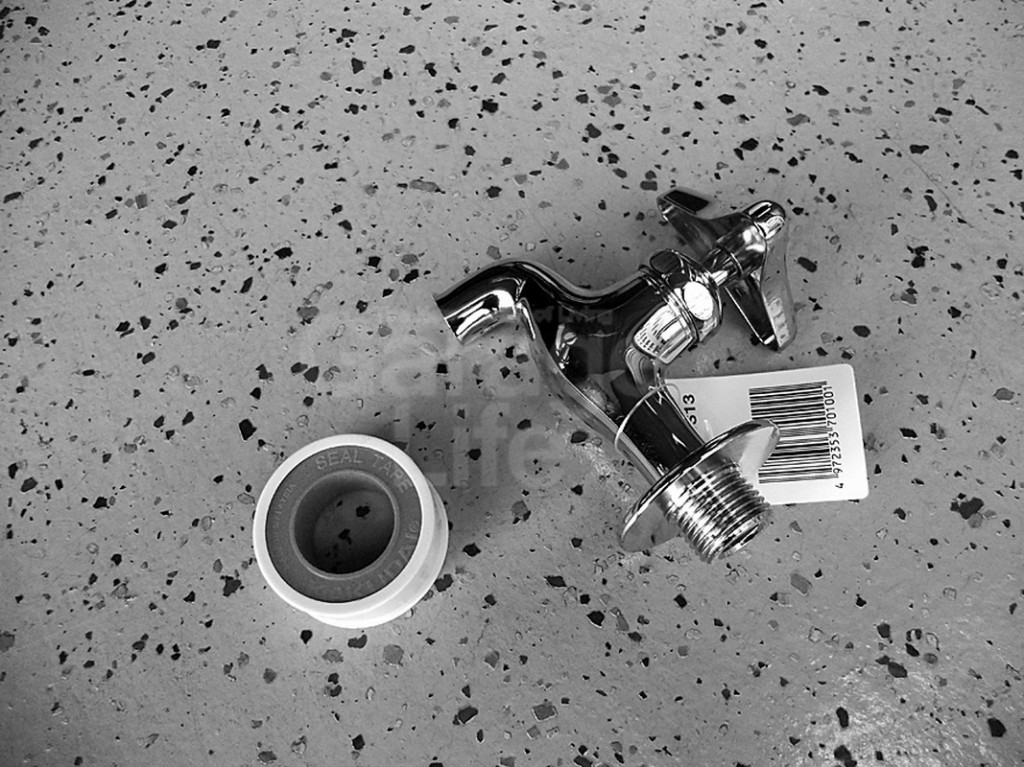 หลังจากนั้น ไปเจอถังน้ำสุดเท่ขนาดมากกว่า 100 ลิตร ขนาดใหญ่เกินไป ไม่สามารถนำมาตั้งในพื้นที่แคบๆ ของโรงจอดรถได้ ราคาก็สูง ด้วยเงินเดือนอันน้อยนิดที่ได้รับอยู่ในปัจจุบัน ไม่สามารถซื้อได้แน่ๆ ดังนั้น จึงซื้อถังน้ำราคา 980 เยน หรือประมาณ 310 บาท ที่โฮมเซ็นเตอร์ ข้อต่อที่แยกน้ำไปอีกทาง ซื้อทางอินเตอร์เน็ตในราคา 1,580 เยน ประมาณ 506 บาท ทั้งหมดเป็นราคาที่สมเหตุสมผล ถ้าซื้อมาแล้วใช้ไม่ได้ ก็คิดไว้แล้วว่าจะ DIY เอง อย่างไรก็ตาม การติดท่อน้ำไว้ใช้ในครั้งนี้ เป็นการทำเพื่อใช้ในยามฉุกเฉิน จึงตั้งใจไว้แล้วว่า จะใช้เงินให้น้อยที่สุด ถ้ามีเงินแล้ว อยากจะซื้อถังที่ดีกว่านี้ก็ทำได้