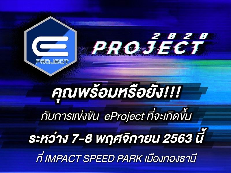“สำหรับในปีนี้การจัดการแข่งขัน Thailand E-Project 2020 จะถูกจัดขึ้น ณ IMPACT Speed Park เมืองทองธานี ในวันที่ 7 และ 8 พฤศจิกายน 2563 โดยในวันที่ 7 พฤศจิกายนจะเป็นการแข่งขันรอบ Media Challenge ซึ่งเป็นการแข่งขันเฉพาะกลุ่มนักข่าว และสื่อมวลชนเท่านั้น ส่วนในวันที่ 8 พฤศจิกายนจะเป็นการแข่งขันในรอบบุคคลทั่วไปซึ่งในปีนี้จะเปิดรับนักแข่งจำกัดเพียงรอบละ 50 คนเท่านั้น”