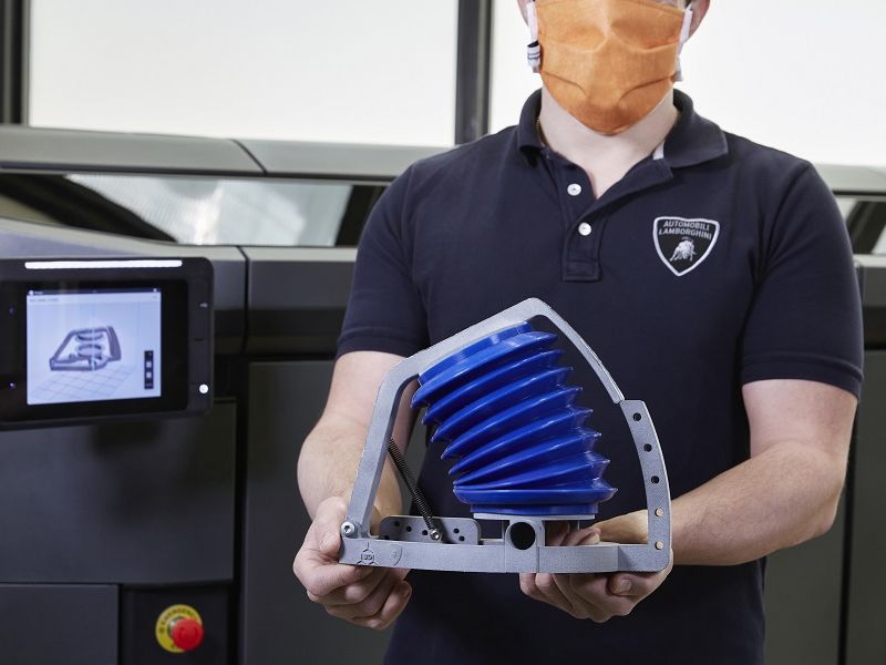 ช่วงเวลาเพียง 2 สัปดาห์ Lamborghini สามารถใช้เครื่องพิมพ์ HP Jet Fusion 3D 4200 printer ซึ่งเป็นเครื่องพิมพ์สามมิติที่ใช้เทคโนโลยี Multi Jet Fusion (MJF) พิมพ์ด้วยระดับความแม่นยำ 0.08 mm ผลิตเครื่องจำลองการหายใจจำนวน 18 เครื่องต่อสัปดาห์ ควบคู่ไปกับการผลิตเฟซชิลด์เพื่อมอบให้บุคลากรทางการแพทย์ต่อสู้กับ Covid-19 ถือเป็นความสำเร็จของการใช้เทคโนโลยีชั้นสูงของสองบริษัทผู้นำทางด้านอุตสาหกรรมยานยนต์ และเครื่องมือแพทย์ในการร่วมมือฟันฝ่าวิกฤตเพื่อต่อสู้กับโรคระบาดครั้งใหญ่ในประเทศอิตาลี