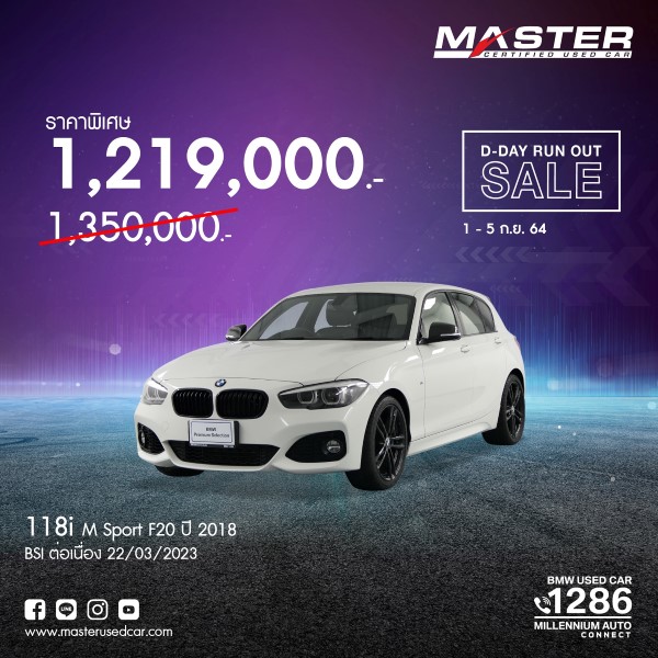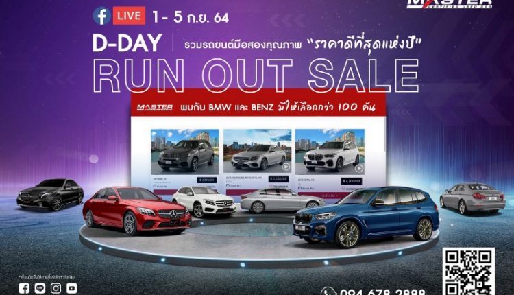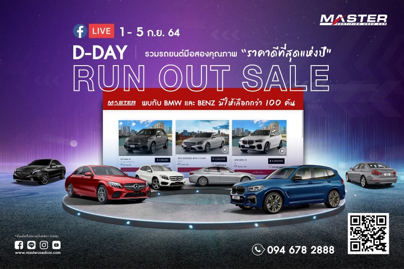 มาสเตอร์ เซอร์ทิฟายด์ ยูสคาร์ ศูนย์รวมรถยนต์มือสองครบวงจร ภายใต้กลุ่มธุรกิจ มิลเลนเนียม กรุ๊ป คอร์ปอเรชั่น (เอเชีย) จัดกิจกรรมออนไลน์ หรือ Live Event ‘D-Day Run Out Sale’ ยกทัพยนตรกรรมระดับพรีเมียม อาทิ บีเอ็มดับเบิลยู และ เมอร์เซเดส-เบนซ์ มือสอง รวมกว่า 100 คัน มาพร้อมราคาดีที่สุดแห่งปี มีการไลฟ์ทุกวันไม่ซ้ำกัน ระหว่างวันที่ 1-5 กันยายนนี้ ที่โชว์รูมบีเอ็มดับเบิลยู ยูสคาร์ มิลเลนเนียม ออโต้ และเบนซ์ ยูสคาร์ ทั้ง 3 สาขา ลาดพร้าว, พระราม 3 และพระราม 4