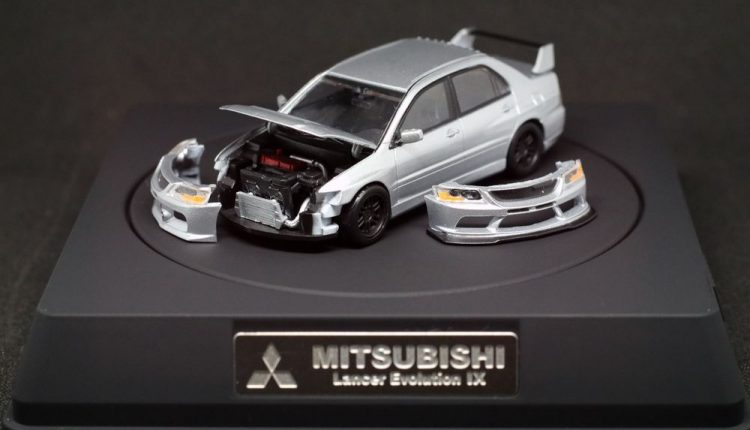 งานชุดนี้มีตัวรถ เครื่องยนต์ กันชน และฐานหมุน ที่มีเพลทชื่อ Mitsubishi Lancer Evolution IX ติดเอาไว้ด้วย งามแท้ๆ