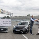 Jörg Bergmeister นักขับทดสอบ และ Porsche Brand Ambassador สามารถทำเวลาหลังพวงมาลัยรถในสายการผลิตปกติต่อรอบสนามนูร์เบิร์กริงต์ ฝั่งเหนือ Nürburgring-Nordschleife ซึ่งมีระยะทาง 20.832 กิโลเมตร ด้วยตัวเลข 7:09.300 นาที โดย New Porsche 718 Cayman GT4 RS สามารถวิ่งครบรอบสนามในเวลาเพียง 7:04.511 นาที ในระยะทาง 20.6 กิโลเมตร ซึ่งเร็วกว่าสถิติเดิมที่ 718 Cayman GT4 ที่ทำไว้ถึง 23.6 วินาที และเพื่อป้องกันอันตรายที่อาจเกิดขึ้นกับผู้ขับขี่ขณะทดสอบ รถสปอร์ตเครื่องยนต์วางกลางคันนี้ จึงได้รับการติดตั้งเบาะนั่งสำหรับการแข่งขัน และยางรถยนต์ Michelin Pilot Sport Cup 2 R ที่สามารถเลือกสั่งเป็นอุปกรณ์พิเศษเพิ่มเติมได้ โดยจะมีเจ้าหน้าที่ให้การรับรองมาตรฐานในเรื่องของสภาพตัวรถและน้ำหนัก