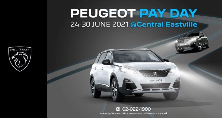 บริษัทเปอโยต์ ไลอ้อน ออโตโมบิล (ประเทศไทย) ผู้แทนจำหน่ายรถยนต์ Peugeot อย่างเป็นทางการในประเทศไทย เปิดโอกาสให้คุณเป็นเจ้าของยนตรกรรมจากประเทศฝรั่งเศส พร้อมข้อเสนอสุดพิเศษกับแคมเปญ ‘PAYDAY’ ระหว่างวันที่ 24-30 มิถุนายน 2564 ณ ศูนย์การค้าเซ็นทรัล เฟสติวัล อีสต์วิลล์ หรือรับสิทธิ์พิเศษได้ที่โชว์รูม เปอโยต์ ไลอ้อน ออโตโมบิล ทุกสาขา