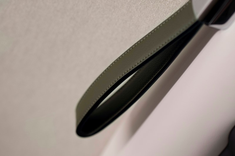บริเวณหมอนรองศีรษะ และที่รองขาของเบาะที่นั่งด้านหลังตกแต่งด้วยหนังเย็บทรงกระบอกสไตล์ Hermès ที่มีความประณีต ในขณะที่มีการใช้สี Seashell White ให้เข้ากับพรมปูพื้นรถที่ทำจากขนแกะ มอบสัมผัสของความสว่าง และโปร่งสบายทั่วภายในห้องโดยสาร