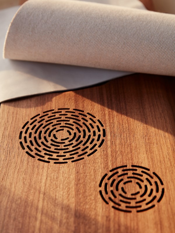 ภายในห้องโดยสารเติมเต็มด้วยตัวอย่างผลงานการออกแบบ Bespoke และงานหัตถศิลป์ของ Rolls-Royce เช่น ฝาครอบลำโพงฉลุไม้ทำจากไม้รอยัลวอลนัทรูพรุนเปิดฉลุอย่างประณีตที่บริเวณแผงประตู สร้างบรรยากาศของความลื่นไหลไร้รอยต่อ ความงดงามของเนื้อสัมผัส และสัมผัสที่นุ่มนวล