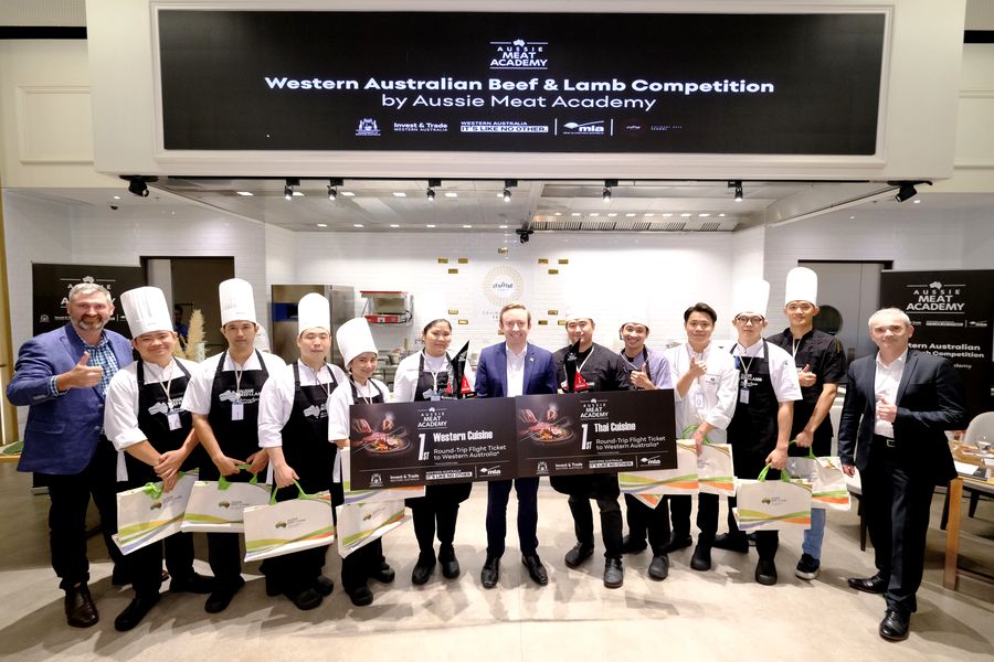 กิจกรรมการแข่งขันสร้างสรรค์เมนูเด็ดจากเนื้อวัวและเนื้อแกะชั้นเลิศจากออสเตรเลีย Western Australian Beef & Lamb Competition โดย Aussie Meat Academy เปิดโอกาสให้เชฟรุ่นใหม่มากความสามารถจำนวน 10 คนจากโรงแรมในเครือ Marriott, Okura Nikko Hotels และ IHG 5-star Hotels ในกรุงเทพมหานคร ได้แสดงความคิดสร้างสรรค์และทักษะในการรังสรรค์เมนูอาหารในสไตล์ตนเอง โดยการแข่งขันแบ่งออกเป็น 2 ทีม ทีมละ 5 คน ทีมแรกได้รับโจทย์ให้สร้างสรรค์เมนูอาหารไทย ขณะที่อีกทีมได้รับโจทย์ให้ปรุงอาหารตะวันตก กิจกรรมครั้งนี้ ไม่เพียงแต่ผู้เข้าแข่งขันจะได้ฝึกฝนทักษะการสร้างสรรค์เมนูอาหารจากวัตถุดิบชั้นเลิศเท่านั้น แต่ยังได้รับข้อมูลเชิงลึกอันมีค่าเกี่ยวกับคุณสมบัติต่าง ๆ ของเนื้อวัวและเนื้อแกะจากรัฐเวสเทิร์นออสเตรเลีย ไม่ว่าจะเป็นคุณภาพระดับพรีเมียม ความหลากหลาย และสามารถนำไปปรุงเป็นอาหารจานเด็ดได้หลายเมนู