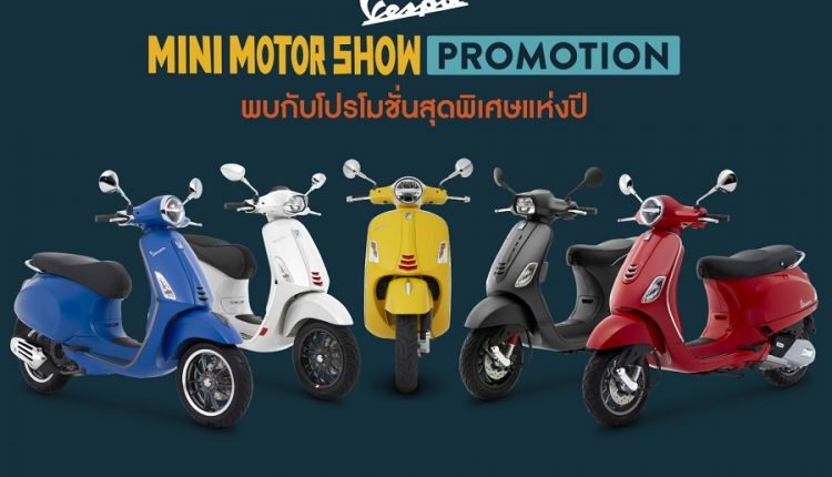 สำหรับโปรโมชั่นในงาน “Vespa Mini Motor Show on Tour” ในครั้งนี้ อัดด้วยโปรโมชั่นและข้อเสนอสุดพิเศษมากมาย เพื่อให้แฟนๆ และสาวกเวสป้าได้จับจองเป็นเจ้าของรถได้ง่ายๆ ที่ตัวแทนจำหน่ายทั่วประเทศ