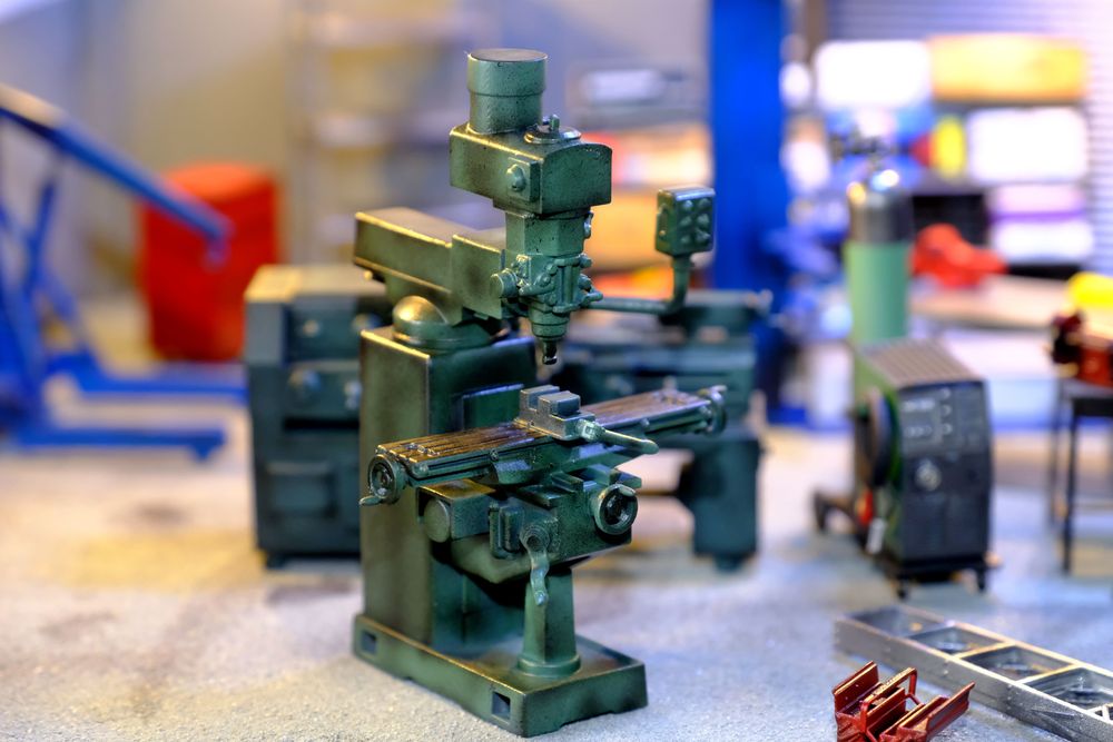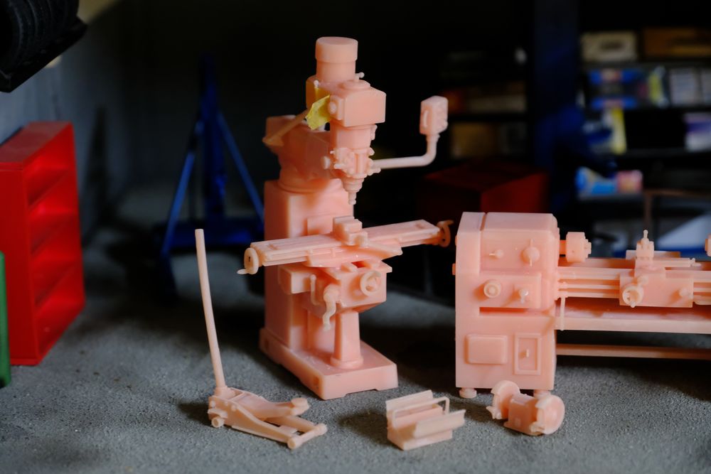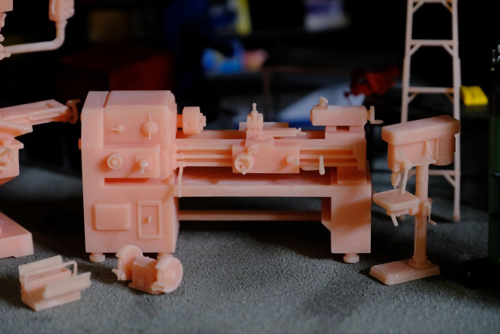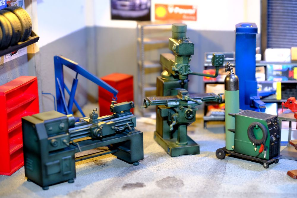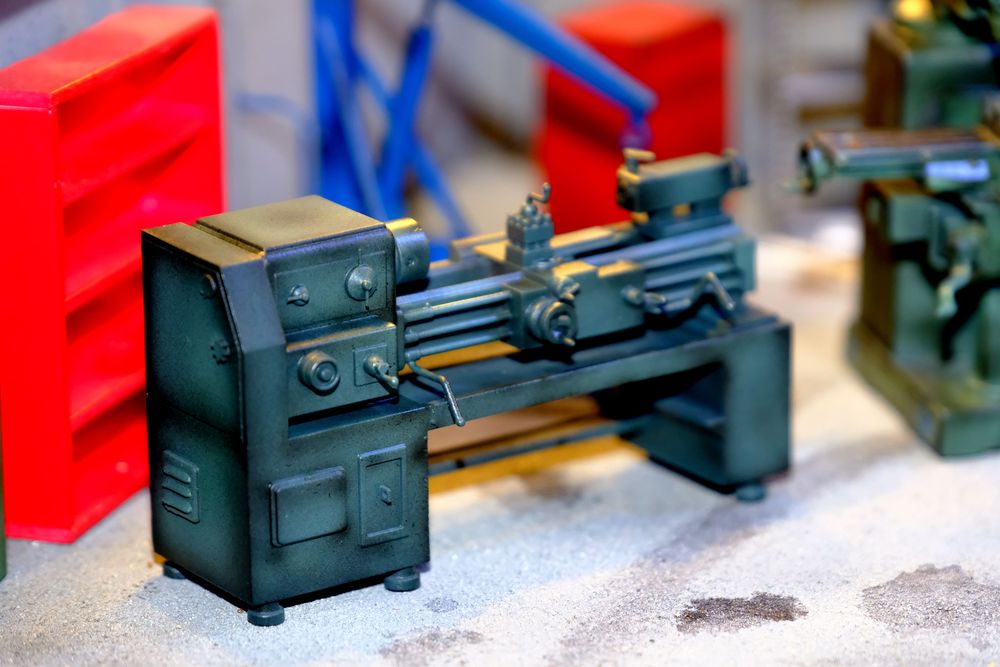 เครื่องกลึง ที่พอจัดวางเข้าอู่แล้วดูได้อารมณ์มากๆ ชิ้นนี้ทำสีให้ดูเขรอะๆ หน่อย จะได้เข้ากับอู่รกๆ โทรมๆ