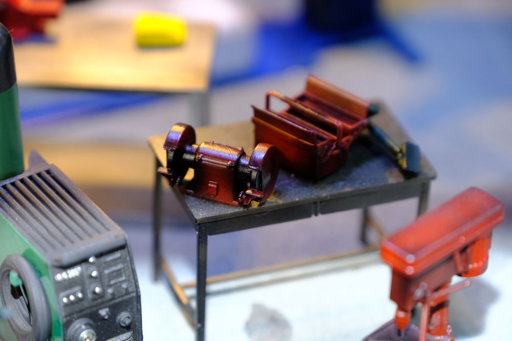 มอเตอร์หินเจียร กล่องเครื่องมือ จับทำสีเตรียมจัดลงอู่ ให้เกิดความสมจริงสมจังมากขึ้น