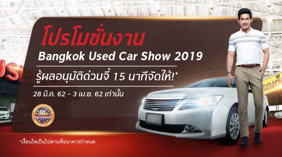 กรุงศรี ยูสด์ คาร์ สินเชื่อรถเต็นท์ จัดโปรโมชั่นพิเศษเพื่อให้ลูกค้าออกรถมือสองอย่างมั่นใจในงาน Bangkok Used Car Show 2019 มหกรรมรถยนต์มือสอง ครั้งที่ 11 ที่อิมแพ็ค เอ็กซิบิชั่น เซ็นเตอร์ ฮอลล์ 7-8 เมืองทองธานี ตั้งแต่วันนี้- 3 เมษายน 2562