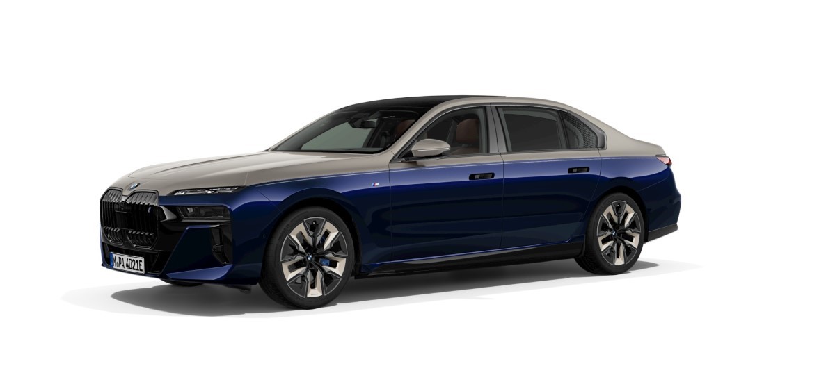 นอกจากนี้ลูกค้ายังสามารถเลือกสีแบบทูโทนสำหรับ i7 xDrive60 M Sport Gran Lusso ที่จับคู่สีภายนอกได้อย่างมีเอกลักษณ์ มาพร้อมสีหลังคา 2 สีให้เลือก ได้แก่ สีดำ Black Sapphire Metallic และสีเทา Oxide Grey Metallic และสีตัวถัง 5 สี ได้แก่สีดำ Black Sapphire Metallic, สีเทา Oxide Grey Metallic, สีแดง Aventurine Red Metallic, สีน้ำเงิน Tanzanite Blue Metallic และสีเทา Dravit Grey Metallic