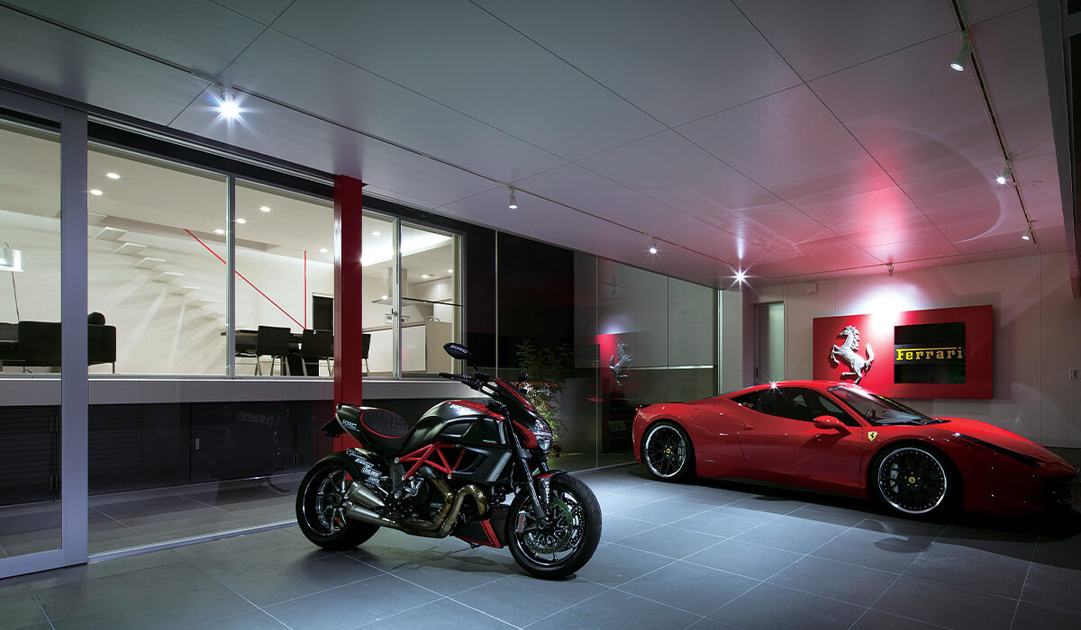 โรงจอดรถหลังแรกที่จะแนะนำใน Car-Class เป็นหนึ่งใน 13 แห่งของ Garage House ที่บริษัท Freedom Architects Design สร้าง ออกแบบโดยคำนึงถึงการใช้ชีวิตของเจ้าของที่มีรถยนต์และรถมอเตอร์ไซค์เป็นงานอดิเรก เพื่อให้เขาใช้ชีวิตประจำวันได้อย่างสะดวกสบาย
