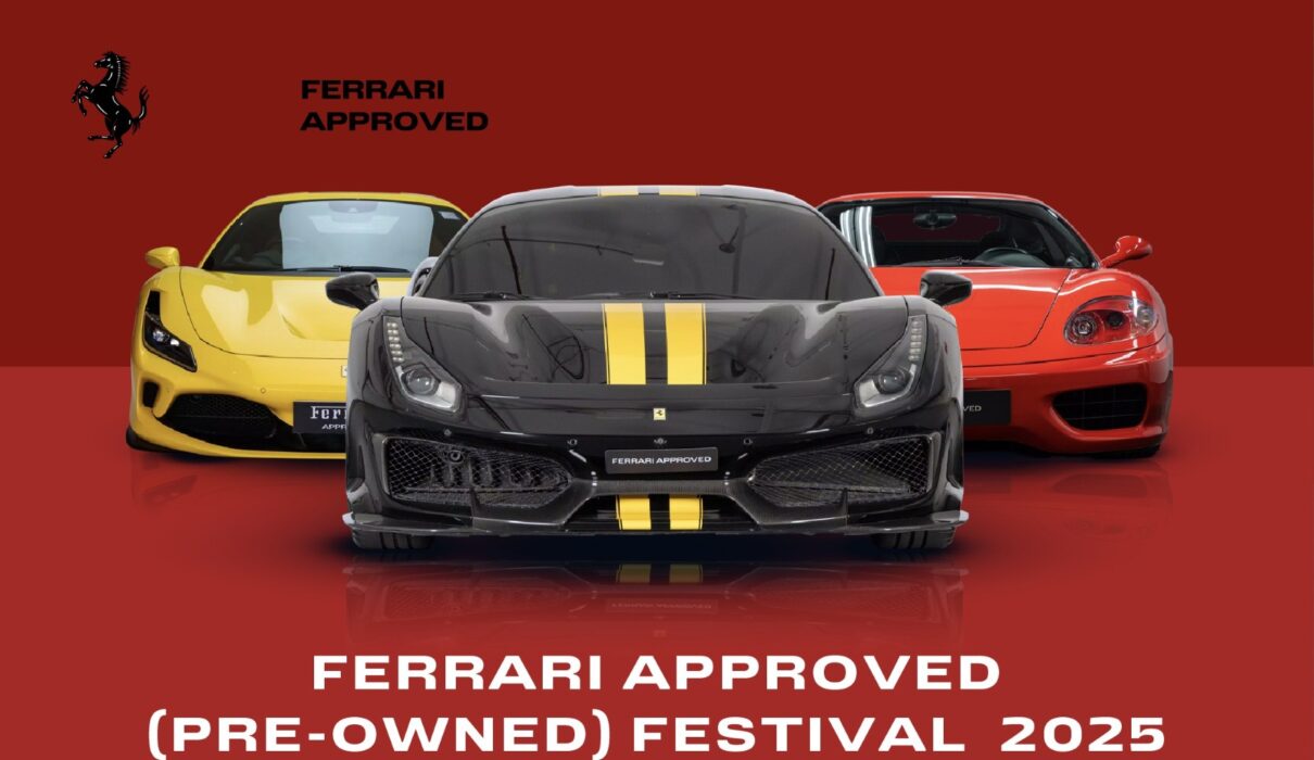 Ferrari Approved (Pre-owned) Festival 2025 สัมผัสฝูง “ม้าลำพอง” กว่า 20 คัน พร้อมเปิดอาคารใหม่สู่ประสบการณ์เหนือระดับ ระหว่างวันที่ 23–25 พฤษภาคม 2568 ณ โชว์รูม คาวาลลิโน มอเตอร์