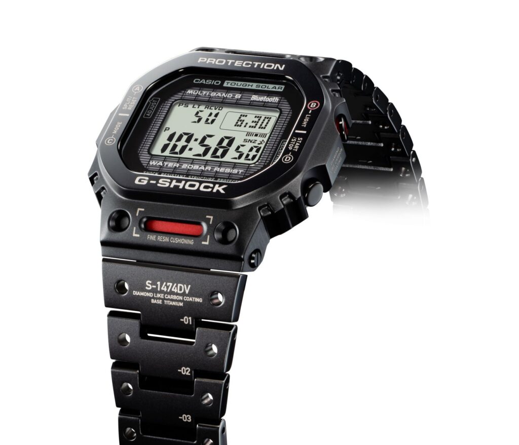อีกรุ่นที่น่าจับตามอง คือรุ่น GMW-B5000TVA มาในรูปทรงสี่เหลี่ยมจัตุรัสได้รับแรงบันดาลใจจากธีมโลกเสมือนจริง และอ้างอิงจากรุ่น GMW-B5000 ที่ทำด้วยโลหะทั้งหมด โดยดีไซน์ของรุ่นนี้ได้รับแรงบันดาลใจจาก G-SHOCK แบบเหลี่ยมรุ่นแรก มาพร้อมชิ้นส่วนไทเทเนียมที่แข็งแกร่งทนทานแต่มีน้ำหนักเบา เคลือบด้วย DLC (diamond-like carbon) และแกะสลักลวดลายเรขาคณิตด้วยเลเซอร์บนกระจก ซึ่งธีมโลกเสมือนจริงพิเศษนี้จะเน้นถึงการออกแบบที่มีลูกเล่นไม่ซ้ำใคร ผ่านวัสดุที่ใช้ผลิต การแกะสลัก และรูปลักษณ์ที่โดดเด่นกว่ารุ่นอื่นๆ