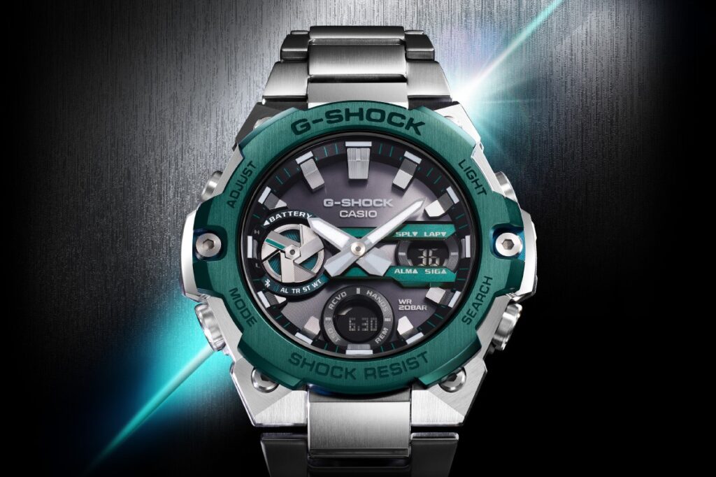 รุ่น GST-B400CD นาฬิการุ่นใหม่ล่าสุดในคอลเลกชัน G-STEEL ยอดนิยม โดยรุ่น GST-B400 มาพร้อมตัวเรือนเพรียวบางคล่องตัวและกรอบตัวเรือนมีการเคลือบไอพีสีเขียว แสดงถึงลักษณะเฉพาะตัวของผู้สวมใส่ที่ละเอียดอ่อนและสุขุม โดดเด่นด้วยวัสดุโลหะและคาร์บอน มาพร้อมโครงสร้างคาร์บอนปกป้องตัวเรือน และกรอบตัวเรือนจากวัสดุคาร์บอนไฟเบอร์เสริม เรซินที่ทนทานต่อแรงกระแทก ทำให้ตัวเรือนมีน้ำหนักเบาและเพรียวบางเพียง 12.9 มม. ซึ่งสอดคล้องกับตัวปุ่มกดสแตนเลสที่มีขนาดเล็กลง เพื่อให้ง่ายต่อการสัมผัสและใช้งานจริง