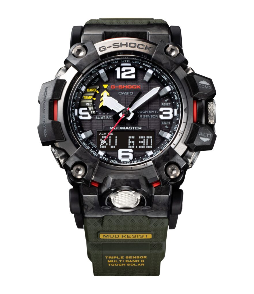 ถัดมาเป็นการเปิดตัวครั้งแรกของซีรีย์ MUDMASTER รุ่น GWG-2000 จาก G-SHOCK นาฬิกาที่สร้างขึ้นจาก Forged Carbon หรือวัสดุคาร์บอนแบบที่ใช้ในอตุสาหกรรมอากาศยานและรถแข่ง ที่มีเอกลักษณ์เรื่องน้ำหนักเบาและความทนทานเป็นเลิศ โดยรุ่น MUDMASTER นี้เหมาะสำหรับสวมใส่ในสภาวะที่ต้องการความแข็งแกร่งสูงสุด เนื่องจากตัวเรือนมีโครงสร้างป้องกันฝุ่นและโคลน พร้อมด้วยปุ่ม Mud Resist แบบปรับปรุงใหม่ เพื่อการใช้งานที่เหนือกว่าในสภาวะแวดล้อมทางบกที่มีสิ่งสกปรก ทราย โคลน ฝุ่น หรือสิ่งก่อสร้าง ได้อย่างสะดวกสบายและแข็งแรงทนทาน